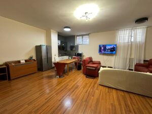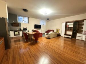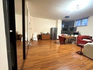 L’ingresso si apre su un’ampia e luminosa zona giorno con cucina a vista, creando un ambiente arioso e funzionale. La disposizione attuale comprende un grande soggiorno, una spaziosa camera da letto e un bagno. Grazie alla metratura generosa e alla distribuzione degli spazi, è possibile ricavare una seconda camera da letto, rendendo l’appartamento adatto a diverse esigenze abitative. Il riscaldamento è centralizzato.
