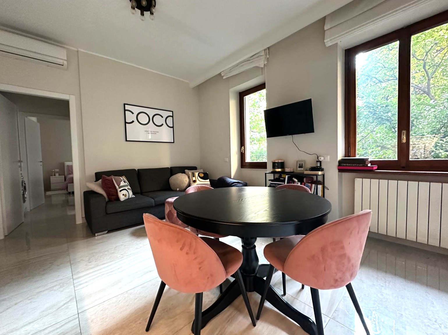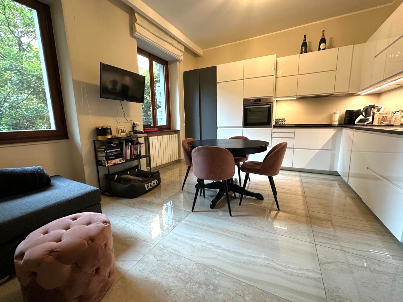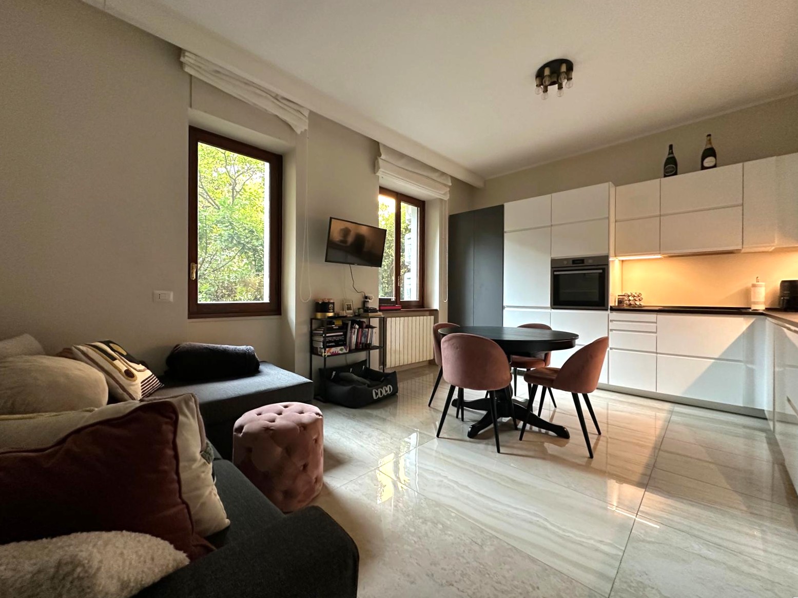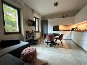 L’appartamento, finemente ristrutturato, si distingue per la cura dei dettagli e la distribuzione razionale degli spazi: un’ampia zona living con cucina a vista, una camera matrimoniale luminosa e accogliente, un bagno finestrato con doccia e finiture di pregio, oltre a un pratico angolo lavanderia. L’esposizione interna sul verde condominiale garantisce silenzio e riservatezza, offrendo un piacevole affaccio e un’atmosfera tranquilla in ogni ambiente.