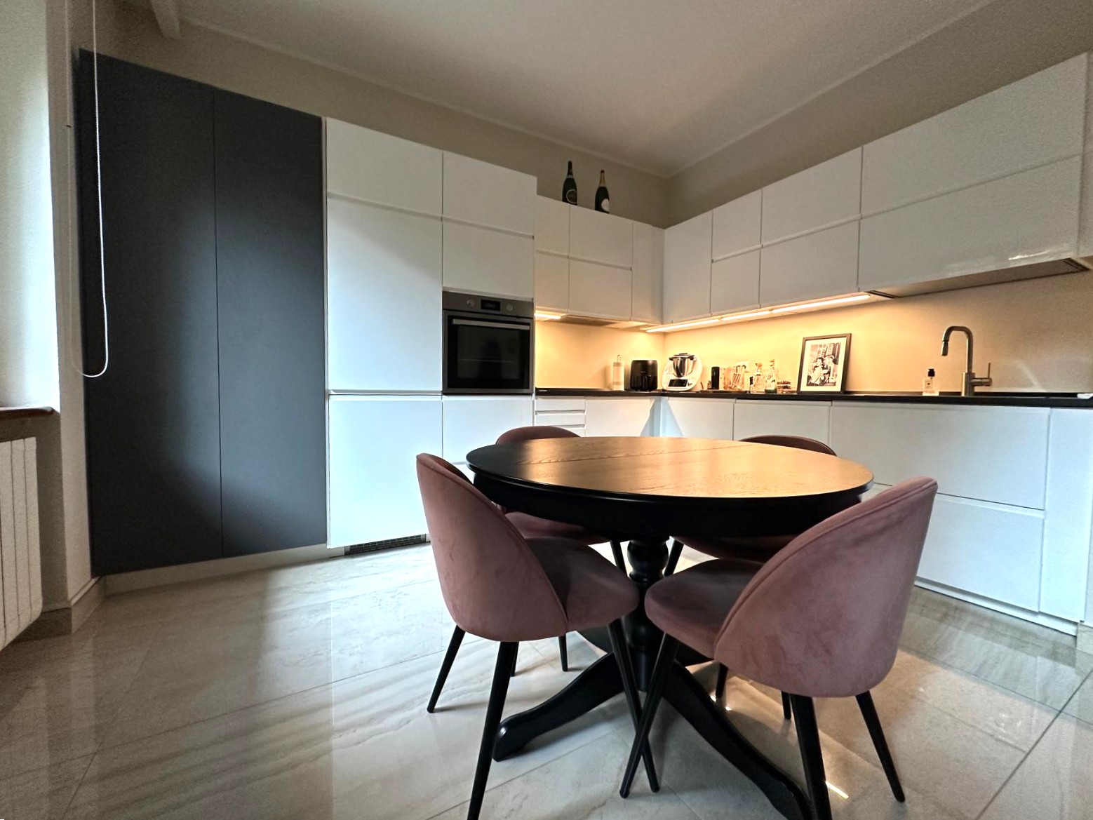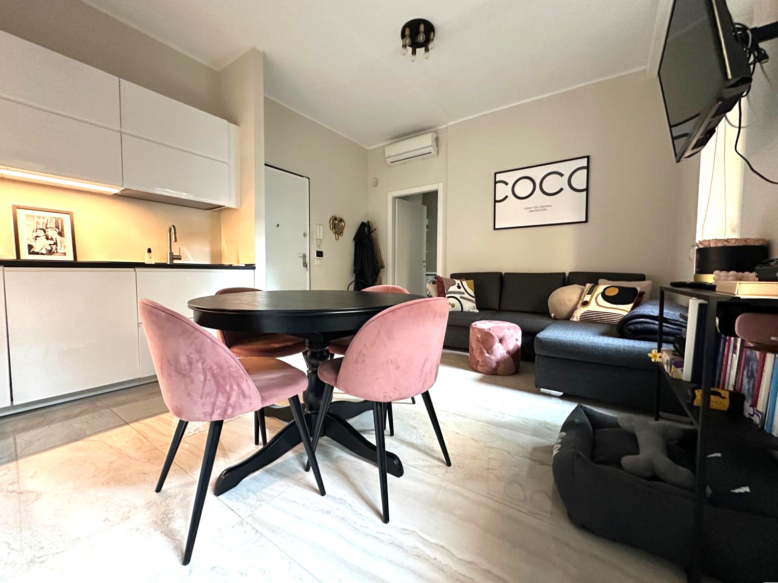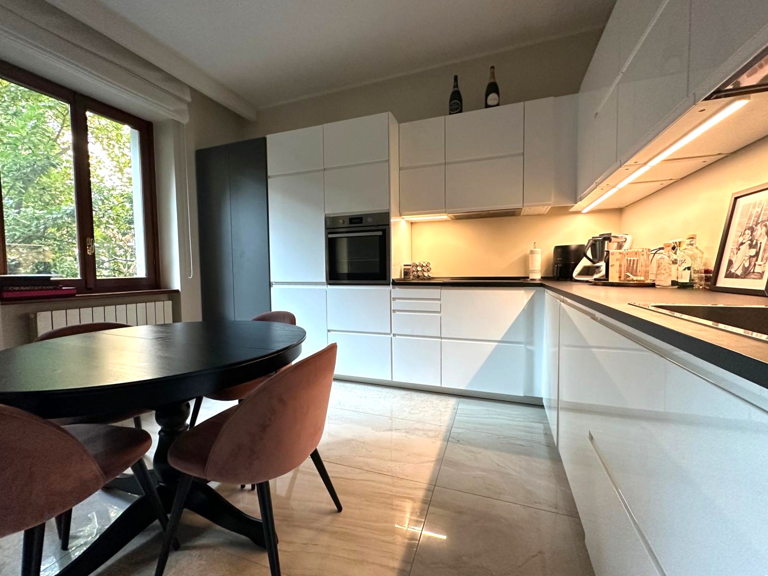 L’appartamento, finemente ristrutturato, si distingue per la cura dei dettagli e la distribuzione razionale degli spazi: un’ampia zona living con cucina a vista, una camera matrimoniale luminosa e accogliente, un bagno finestrato con doccia e finiture di pregio, oltre a un pratico angolo lavanderia. L’esposizione interna sul verde condominiale garantisce silenzio e riservatezza, offrendo un piacevole affaccio e un’atmosfera tranquilla in ogni ambiente.