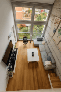La disposizione interna prevede una cucina abitabile con balcone, disimpegno, zona living con finestre a tutta altezza, bagno finestrato. La struttura a doppia altezza permette di sfruttare al meglio gli spazi creando volumi moderni e funzionali.